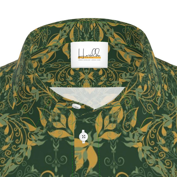 Elevate your wardrobe with this striking green and yellow ornamental pattern men’s short-sleeve shirt, featuring a unique hand-painted design that demands attention. Perfect for everyday wear or your next getaway, this shirt seamlessly blends bold artistry with practical comfort. Explore my store for coordinating accessories to complete your look.